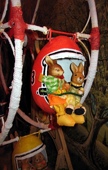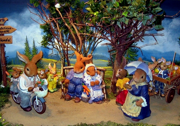 Es handelt sich bei jedem Bild um aus Sperrrholz ausgesägte und bemalte Einzel- elemente, die hintereinander gestellt eine besondere Tiefenwirkung ergeben, fotografiert aber wie ein Flächenbild aussehen.
