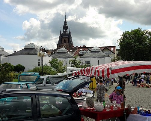 Die “Mott” - ein Vielzweck-Platz mitten in der Stadt; im Hintergrund: das Mia- Münster-Haus mit der Kreis- und Stadtbibliothek und dem Museum; dahinter die Basilika