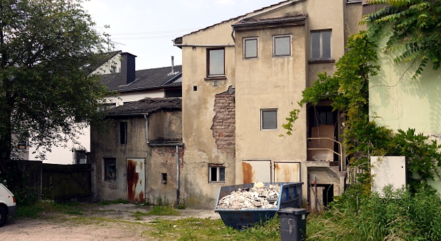 Werbeslogan am Eckhaus Mia-Münster-Straße: “Maler Bick, macht Ihr Häuschen wieder schick”.